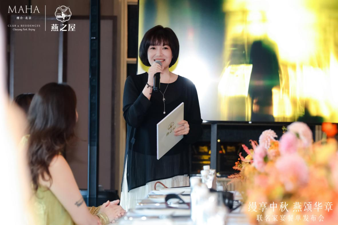 燕之屋公關(guān)總監(jiān)楊航則在致辭中闡釋了這次跨界合作的文化深意:“燕之屋與如此杰出的伙伴合作,正是基于雙方對品質(zhì)、細(xì)節(jié)與人文關(guān)懷的共同追求。我們都認(rèn)同,真正的高級,在于將真誠融入服務(wù),將文化寓于美食,讓每一次相聚,承載更深厚的情感與記憶。此次聯(lián)名中秋家宴菜單,是我們雙方團隊多次溝通、靈感碰撞的成果。愿這一席宴,成為這個秋天您與家人、摯友之間溫暖相聚的美好注腳。”